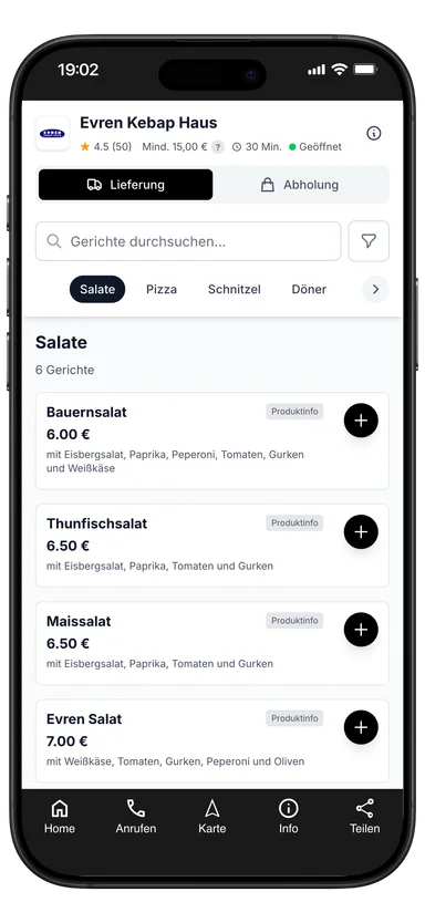 mit Drehspießfleisch, Sauce und Salat oder Pommes frites
